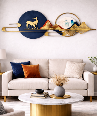 Modern Deer Landscape Metal Wall Art 60×20 Inch