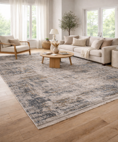 Modern Textured Grey Area Rug for Living Room & Bedroom