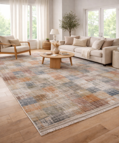 Aura Rust Abstract Area Rug for Living Room & Bedroom