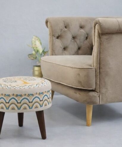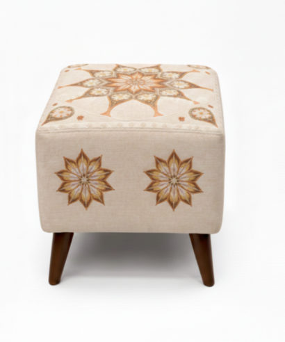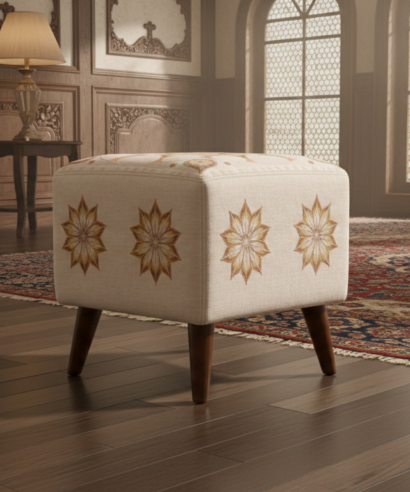 Wooden Pouffe Stool with Embroidery Work Fabric
