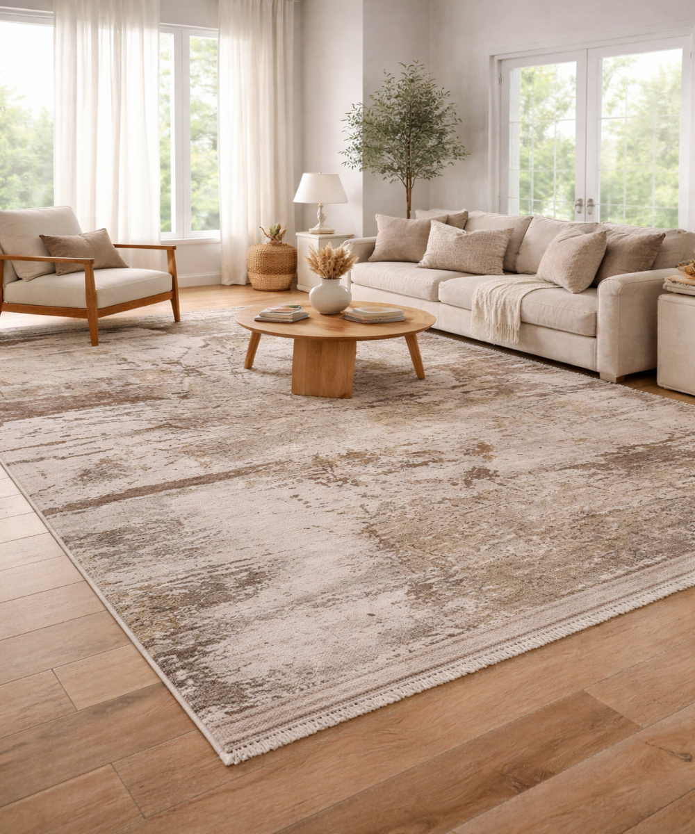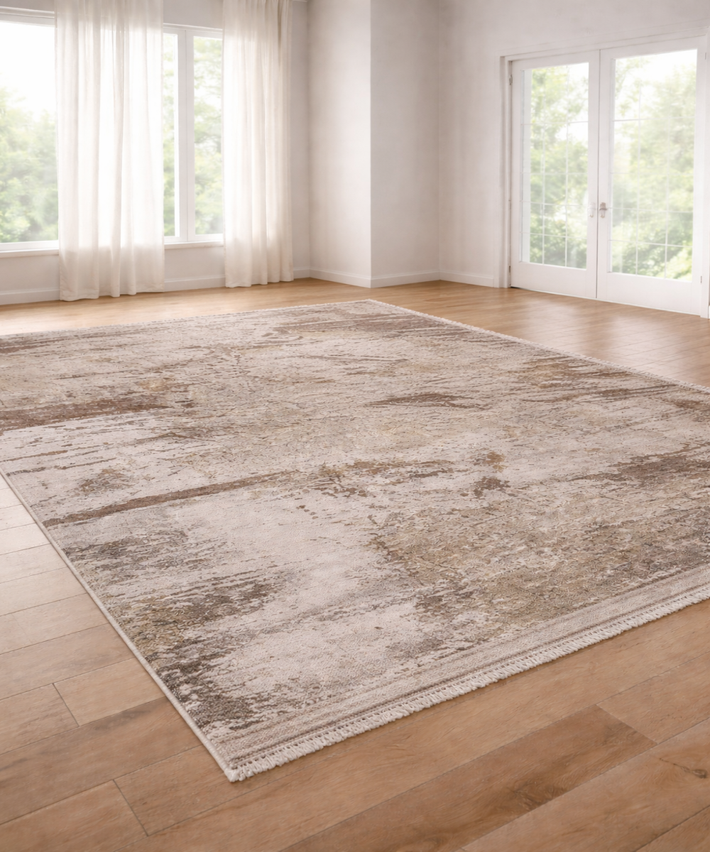 Add warmth and depth to your space with this Aura Rust abstract area rug, featuring earthy tones and a soft textured finish. Ideal for living rooms, bedrooms, and modern interiors.