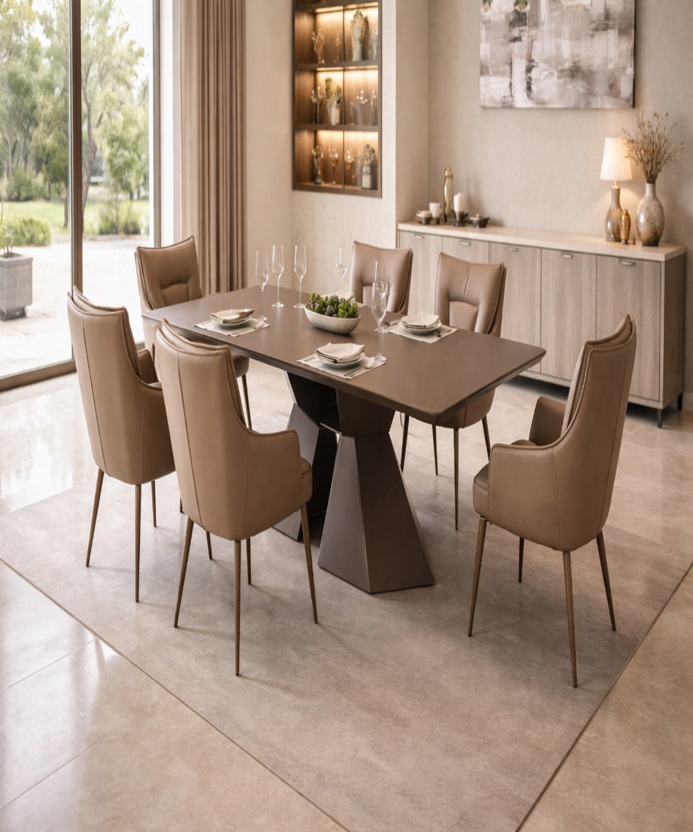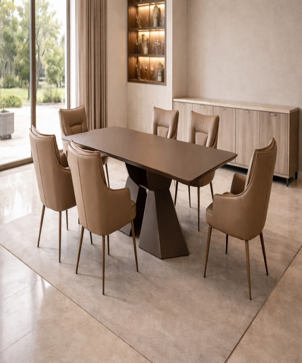 Brown 6 Seater Modern Dining Table Set