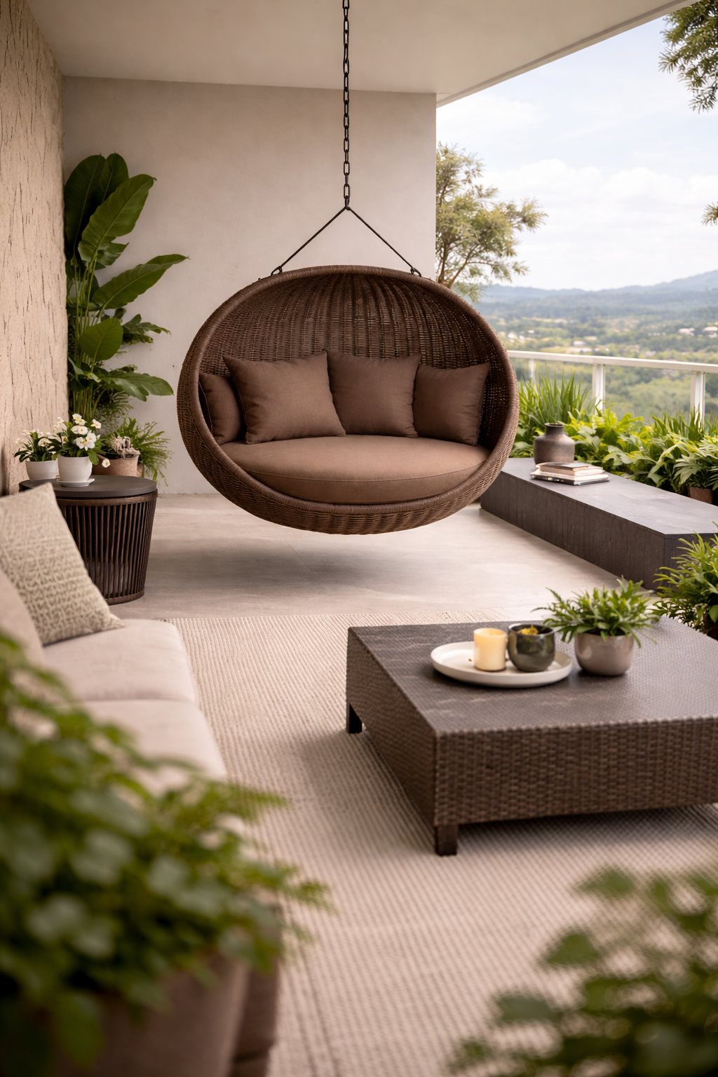 ▪ Weather Suitability: Ideal Covered Outdoor Hanging Swing Sofa Setup