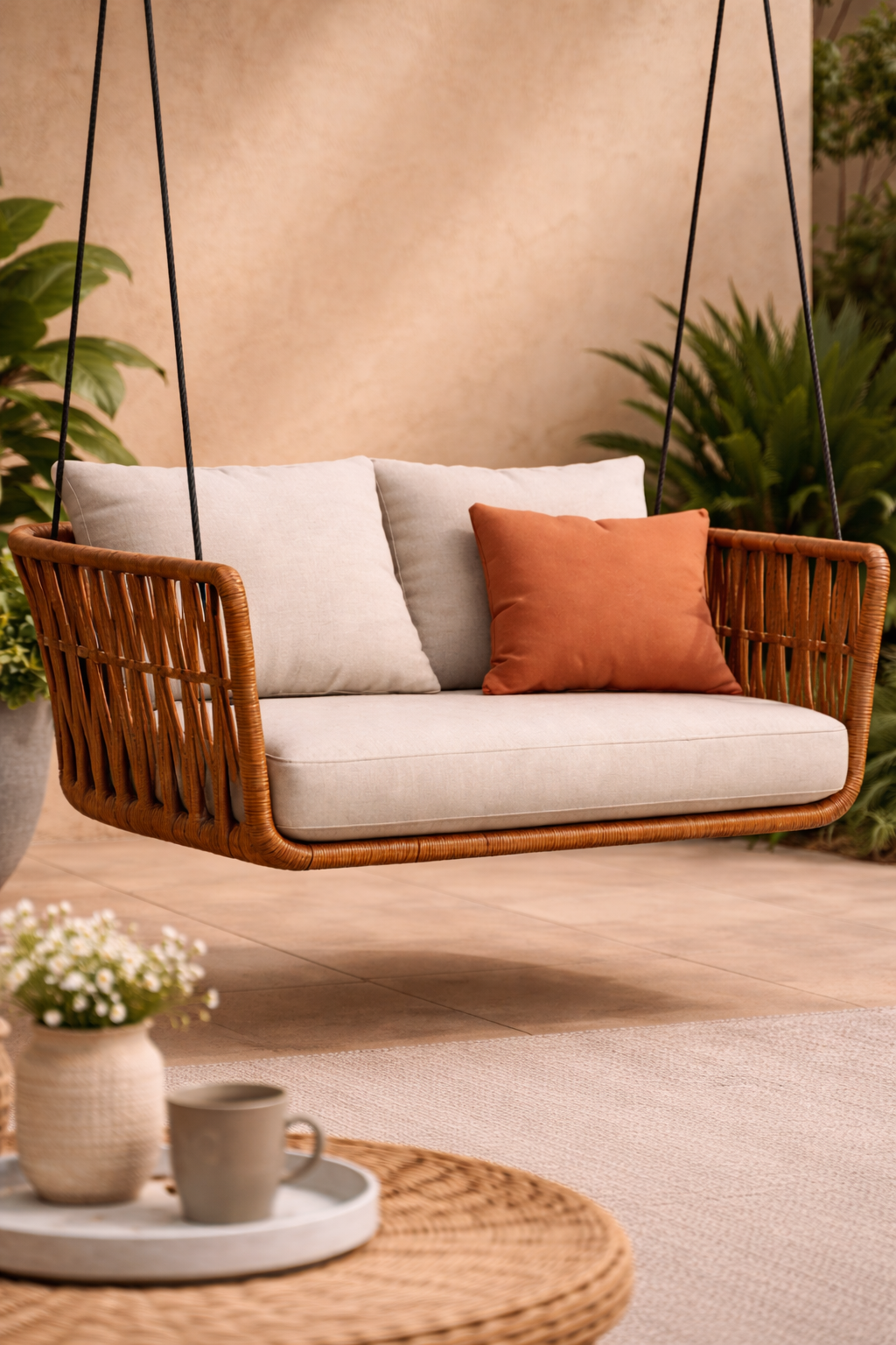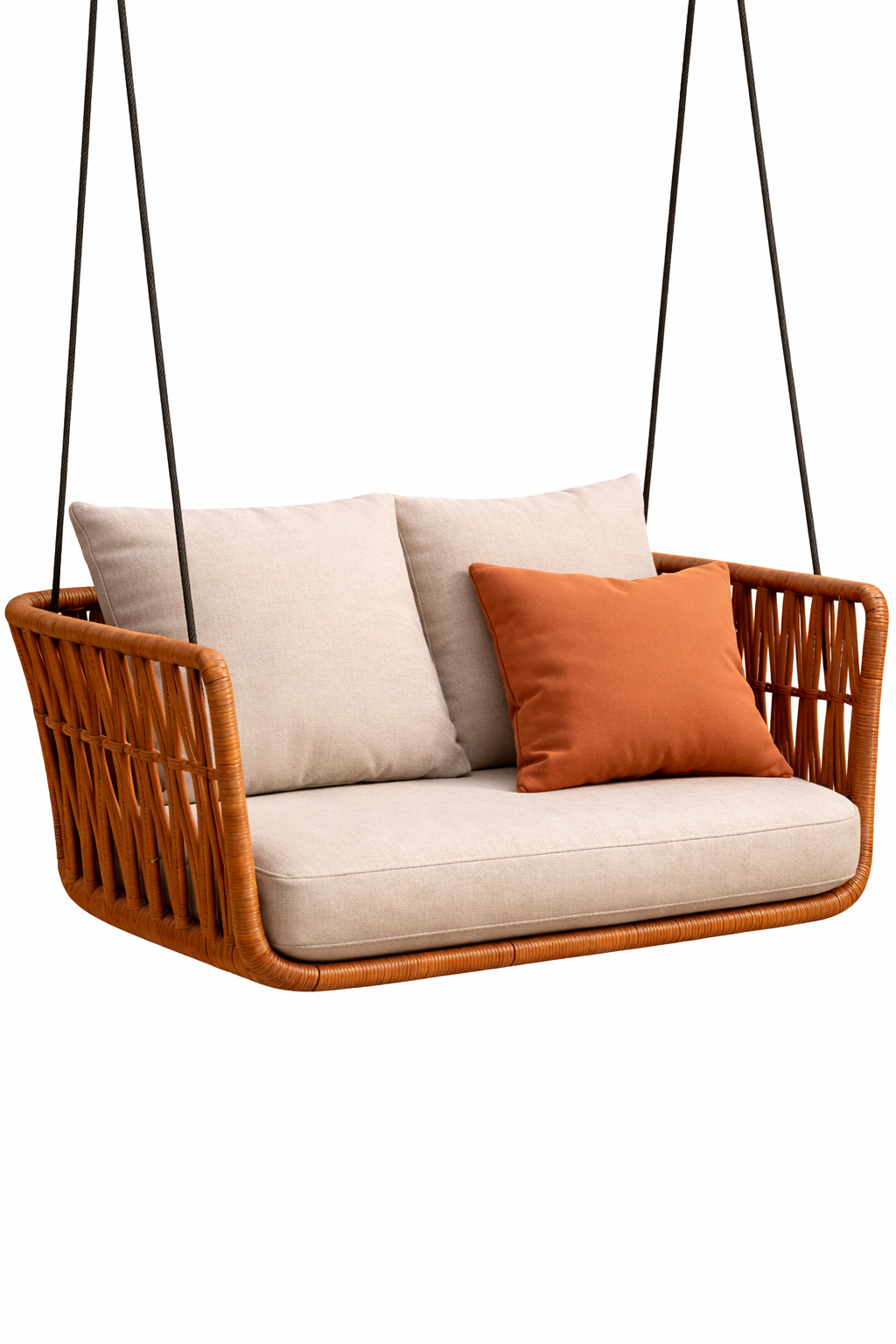 The FSW12 Outdoor Hanging Swing Sofa combines comfort and modern style. Featuring a durable woven rattan frame and plush cushions, this 2-seater hanging sofa creates a cozy relaxation spot for patios, balconies, porches, or gardens while enhancing your outdoor décor.