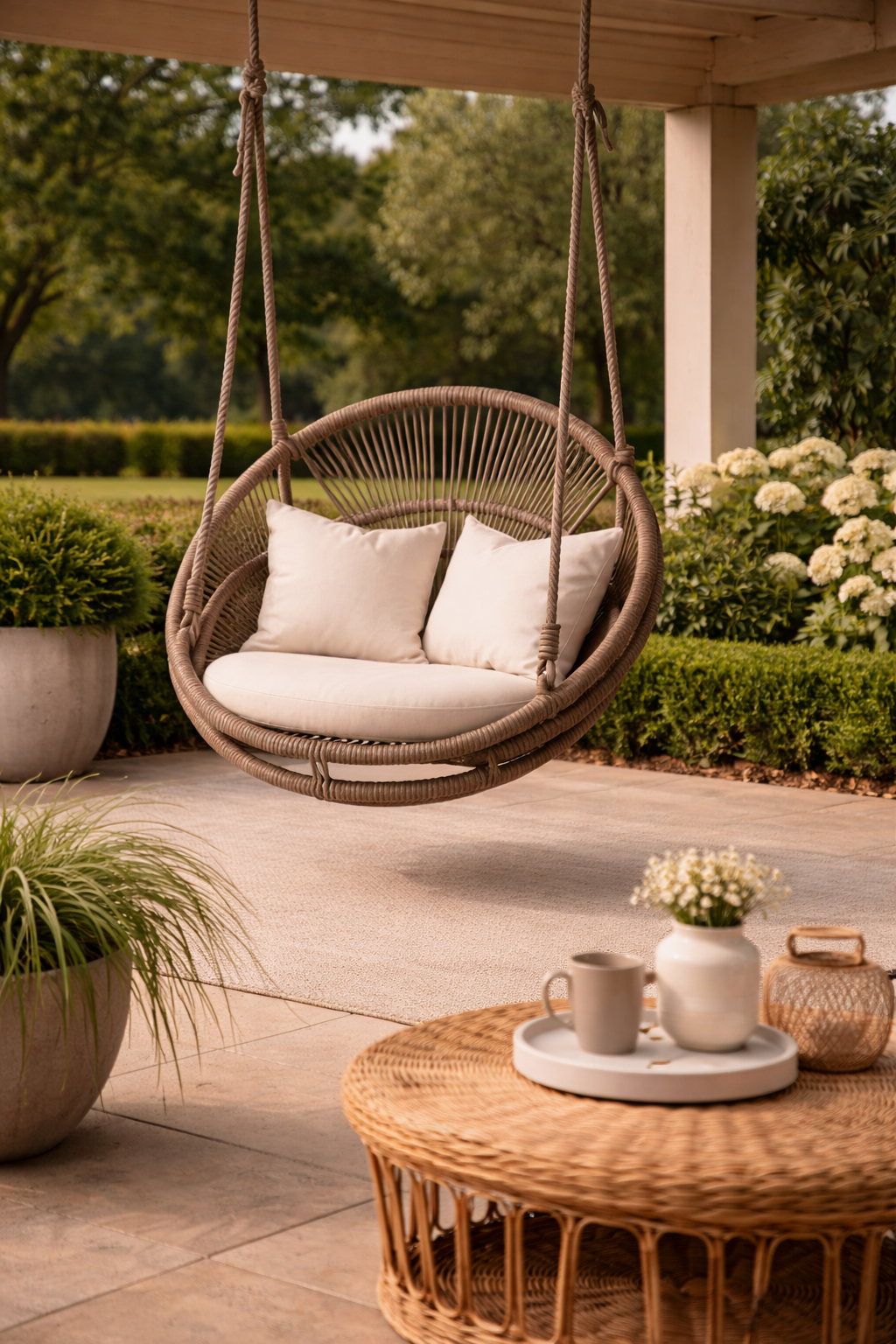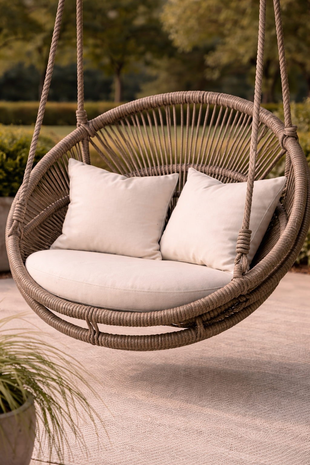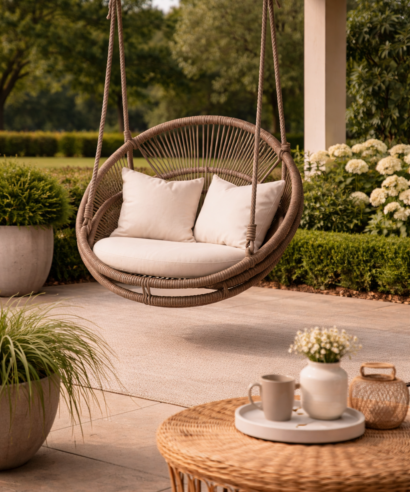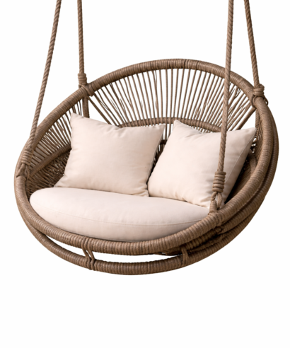 The FSW14 Round Hanging Swing Chair blends comfort with modern style. Featuring a durable woven rattan frame and plush cushions, this elegant hanging chair creates a cozy relaxation spot for balconies, patios, porches, or indoor living spaces.
