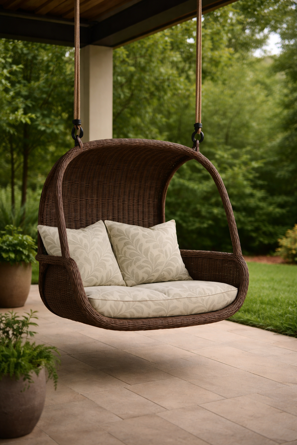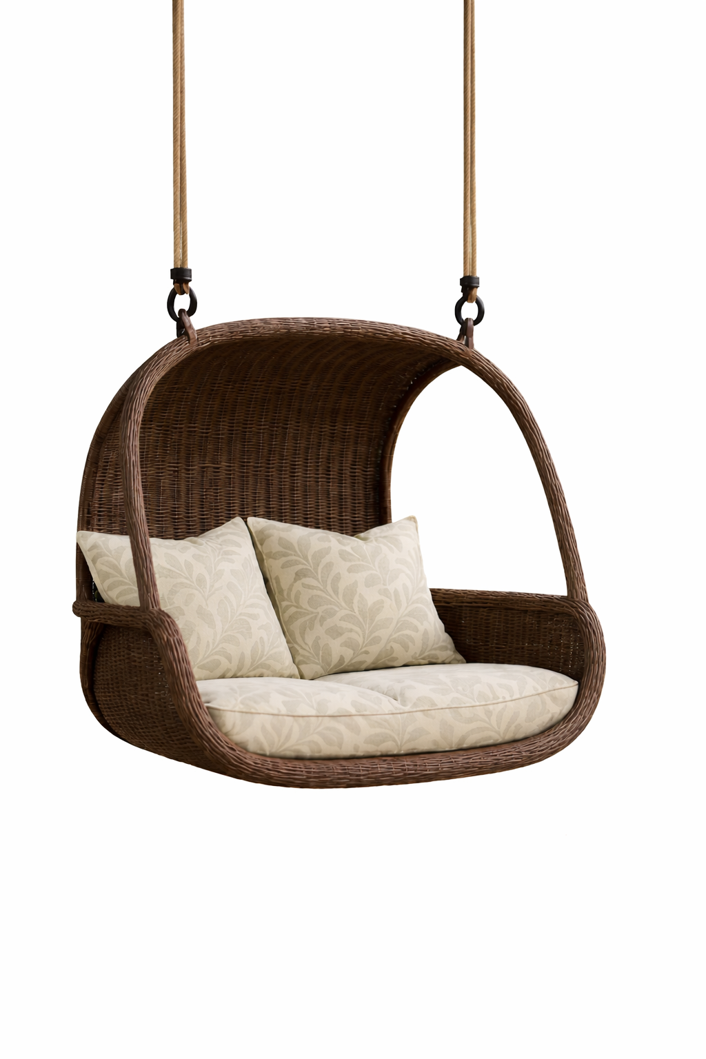 The FSW30 Outdoor Hanging Wicker Swing Chair is designed to bring comfort and modern style to outdoor living spaces. Featuring a durable wicker frame and plush seat cushions, this hanging chair creates a relaxing seating spot for patios, gardens, balconies, and terraces. Its curved design provides excellent support while adding an elegant touch to outdoor décor.