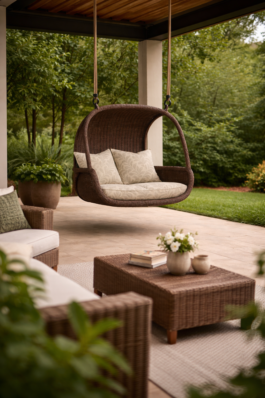 - Outer Material: Weather-Resistant Wicker / Rattan