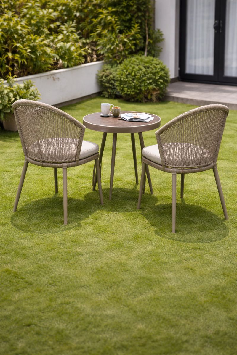 Garden Set with Woven Rope Chairs (1+2) includes two stylish outdoor chairs and a matching table, perfect for garden, patio, balcony, and outdoor seating.