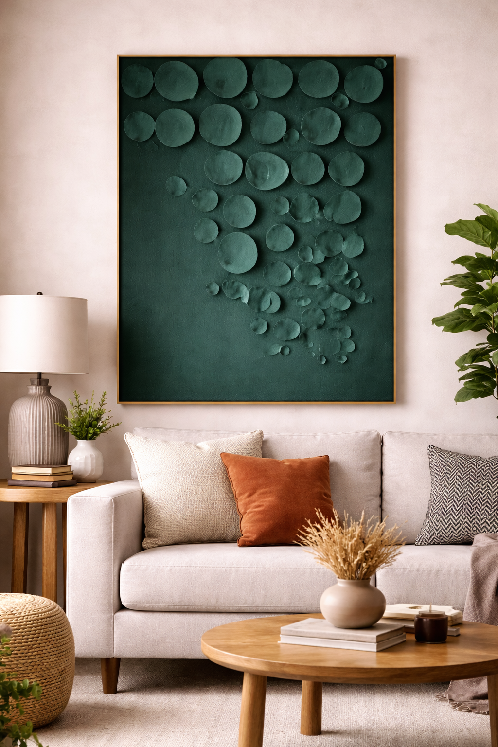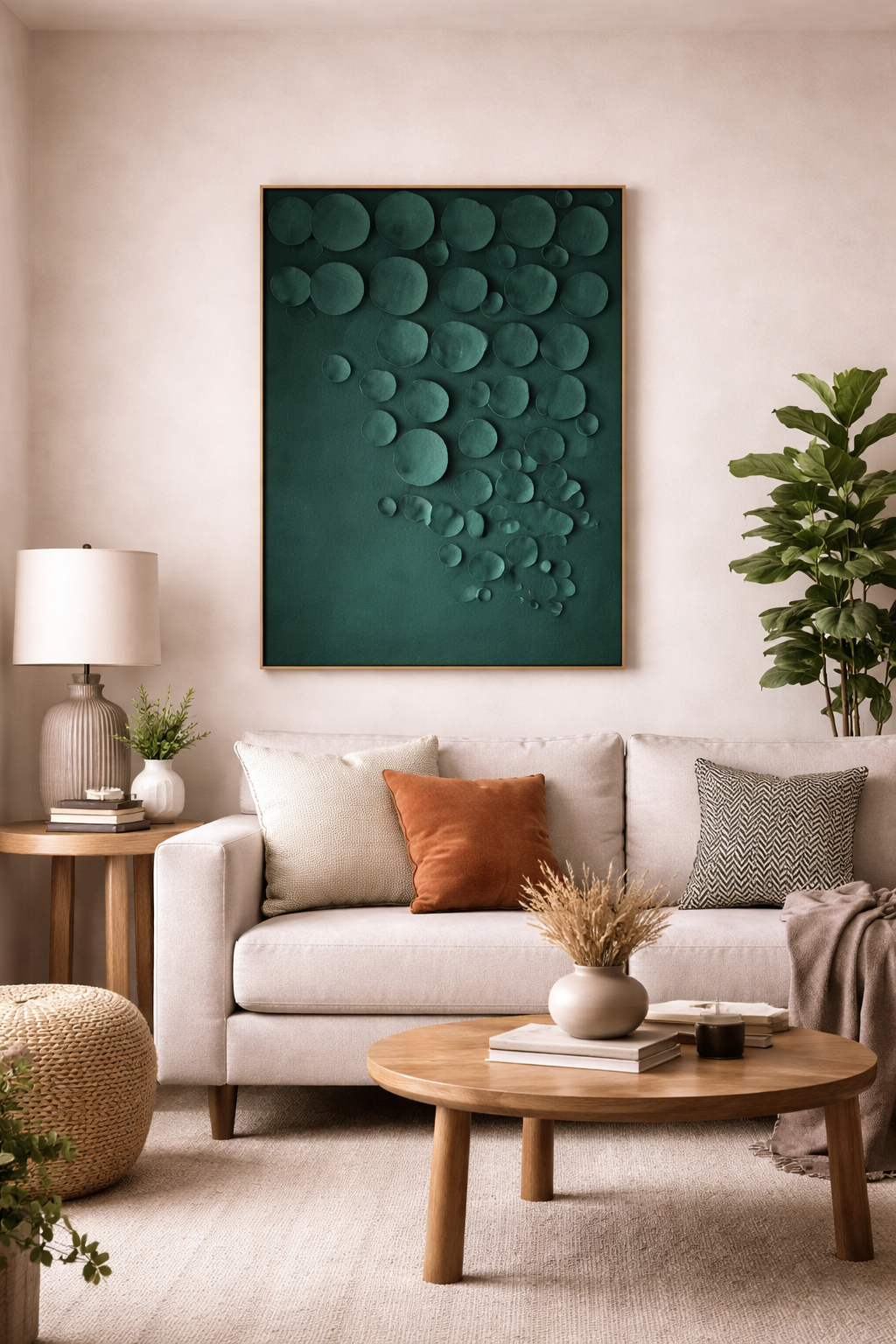 Round Embroidered Wooden Pouffe Stool – Beige & Brown