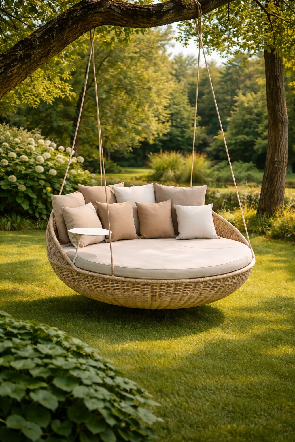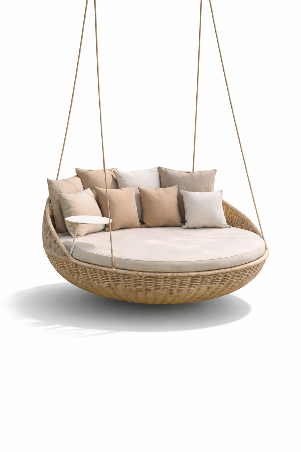 The FSW26 Outdoor Hanging Daybed Swing offers a perfect blend of luxury, comfort, and modern outdoor style. Designed with a strong wicker frame and plush cushions, this elegant swing provides a relaxing lounging space for gardens, patios, poolside areas, and resorts. Its spacious round design and durable hanging structure make it ideal for enjoying peaceful outdoor moments with style and comfort.