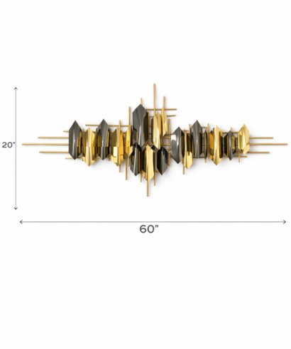 Modern black and gold metal wall art featuring a striking geometric design. Crafted to add luxury, depth, and elegance to living rooms, bedrooms, offices, or hallways.