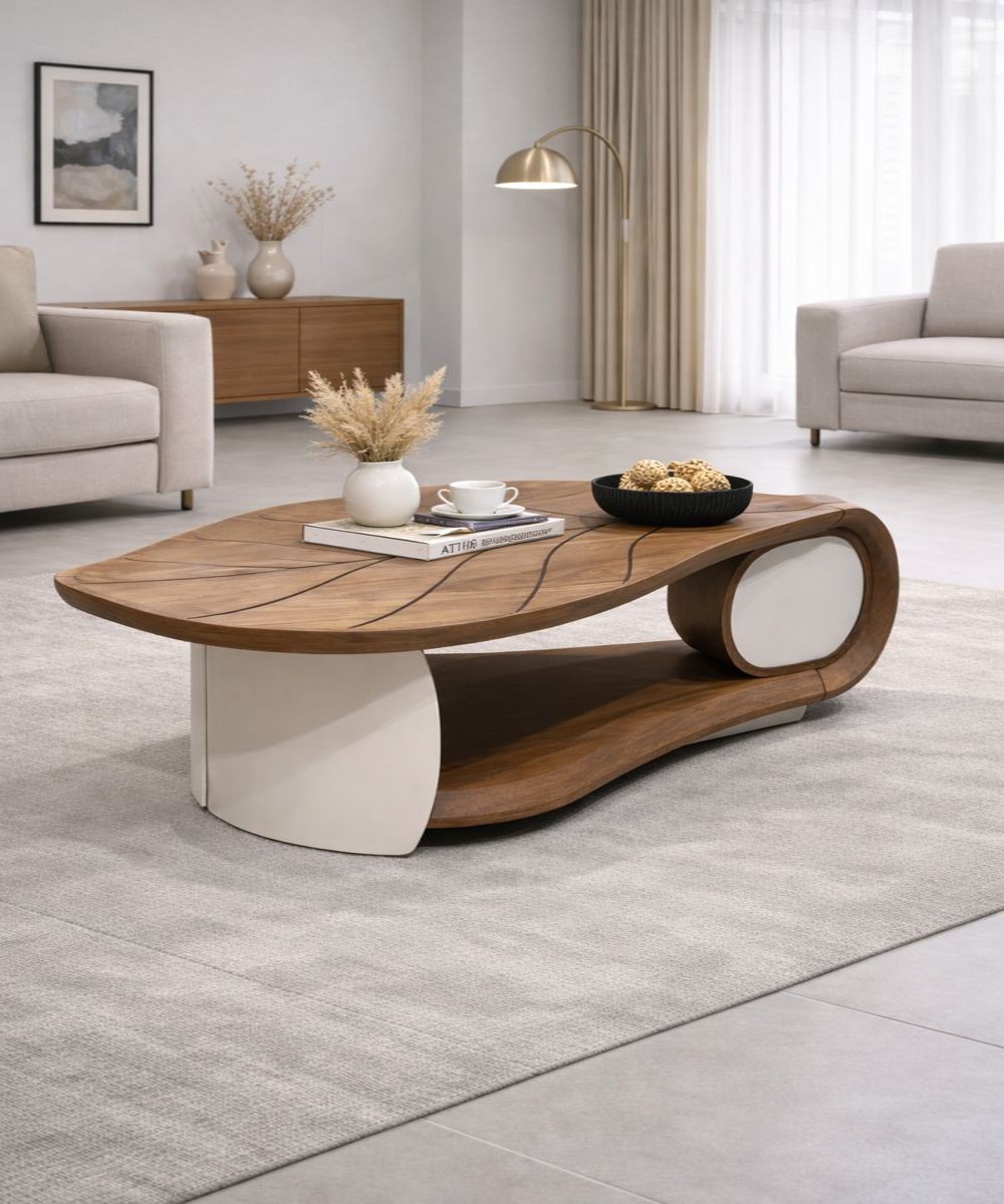 Bring natural elegance to your living room with this leaf style wooden center table. A modern sculptural design with smooth curves and premium finish.